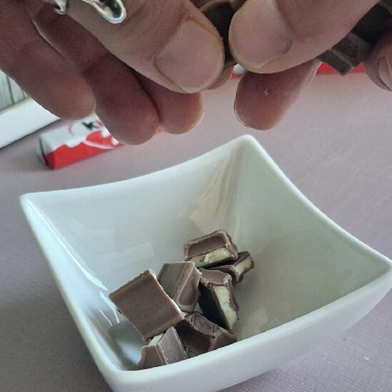 - Melt 4 Kinder chocolate bars over gentle steam.