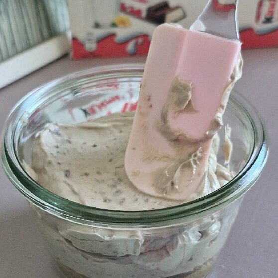 I spread this luscious layer over the biscuit base, and for a moment, the whole kitchen smelled like Kinder heaven.