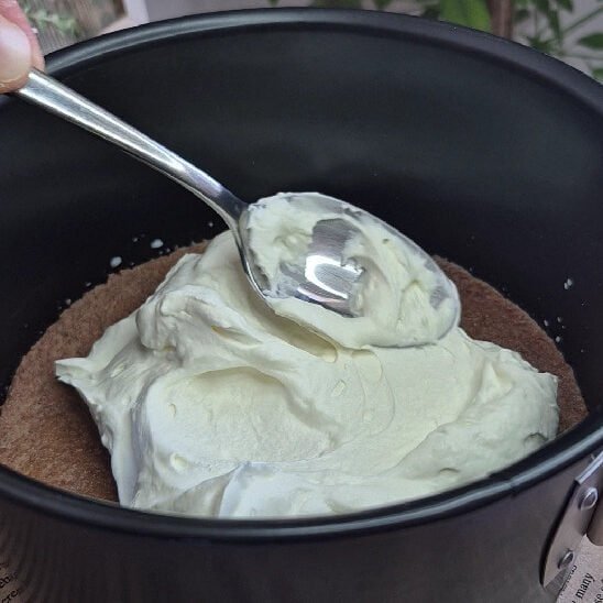 Then I spread a generous layer of mascarpone cream.