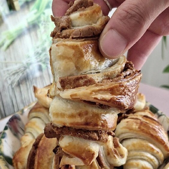 - Crispy, flaky layers from puff pastry