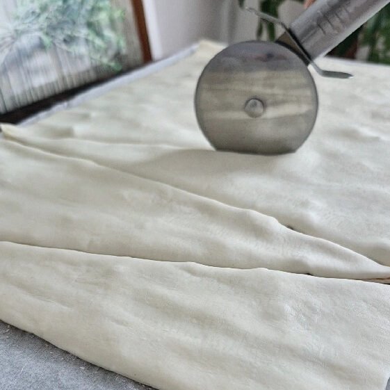 - Cut it into long strips.