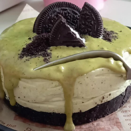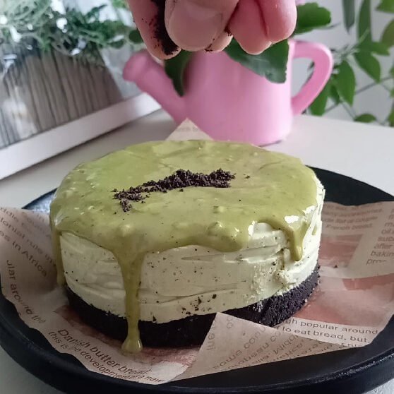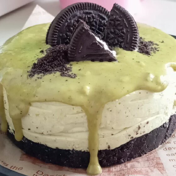 I didn’t set out to create a “signature” mini cake, but this one ended up in my regular rotation because it’s quick, it slices clean, and it hits that sweet spot between crunchy and creamy. The base is straight-up Oreo crust (no extra sugar needed), the filling is a whipped mascarpone cream with a spoon of pistachio cream for flavor, and the top gets a thin pistachio layer that sets like a soft glaze.