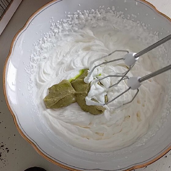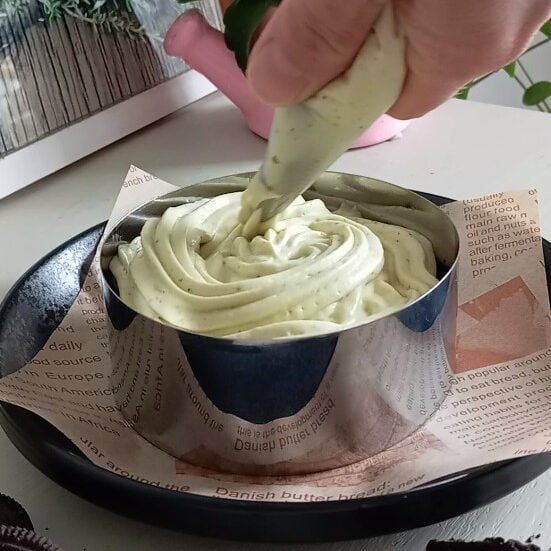 - Filling: Whip cream, mascarpone, and 1 tbsp pistachio cream until thick and creamy.