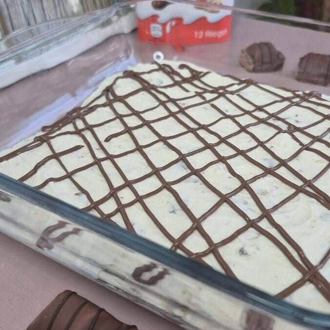 - Crunch + chocolate: chopped Kinder Bueno folded into the filling, plus Nutella dotted between layers.