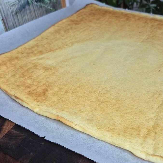 This is the key moment. Rolling works best when the cake is warm and flexible.