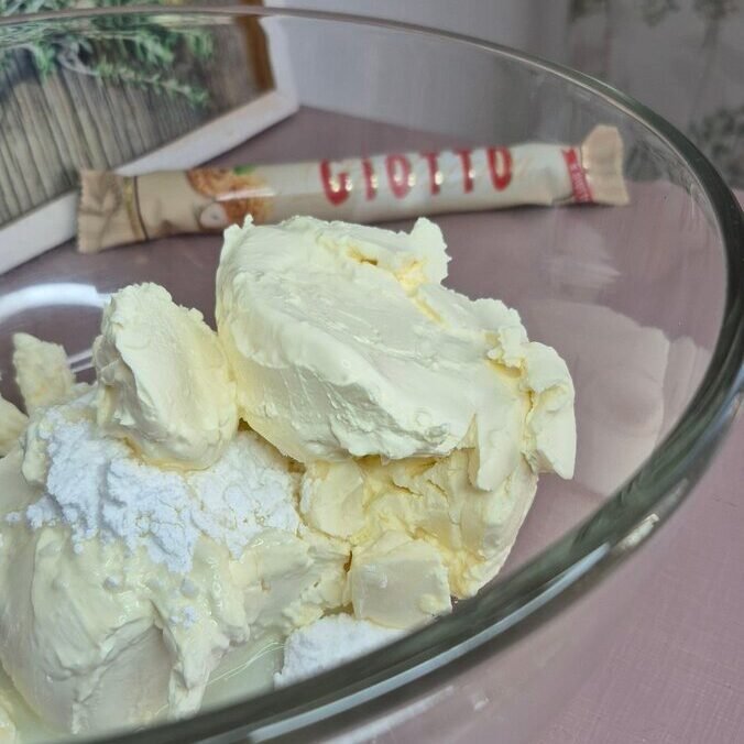 - In a mixing bowl, combine mascarpone and powdered sugar and beat briefly until smooth.