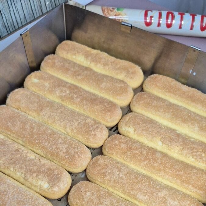 - Quickly dip each ladyfinger into the milk (do not soak). Arrange in a single layer in a 20×20 cm pan.