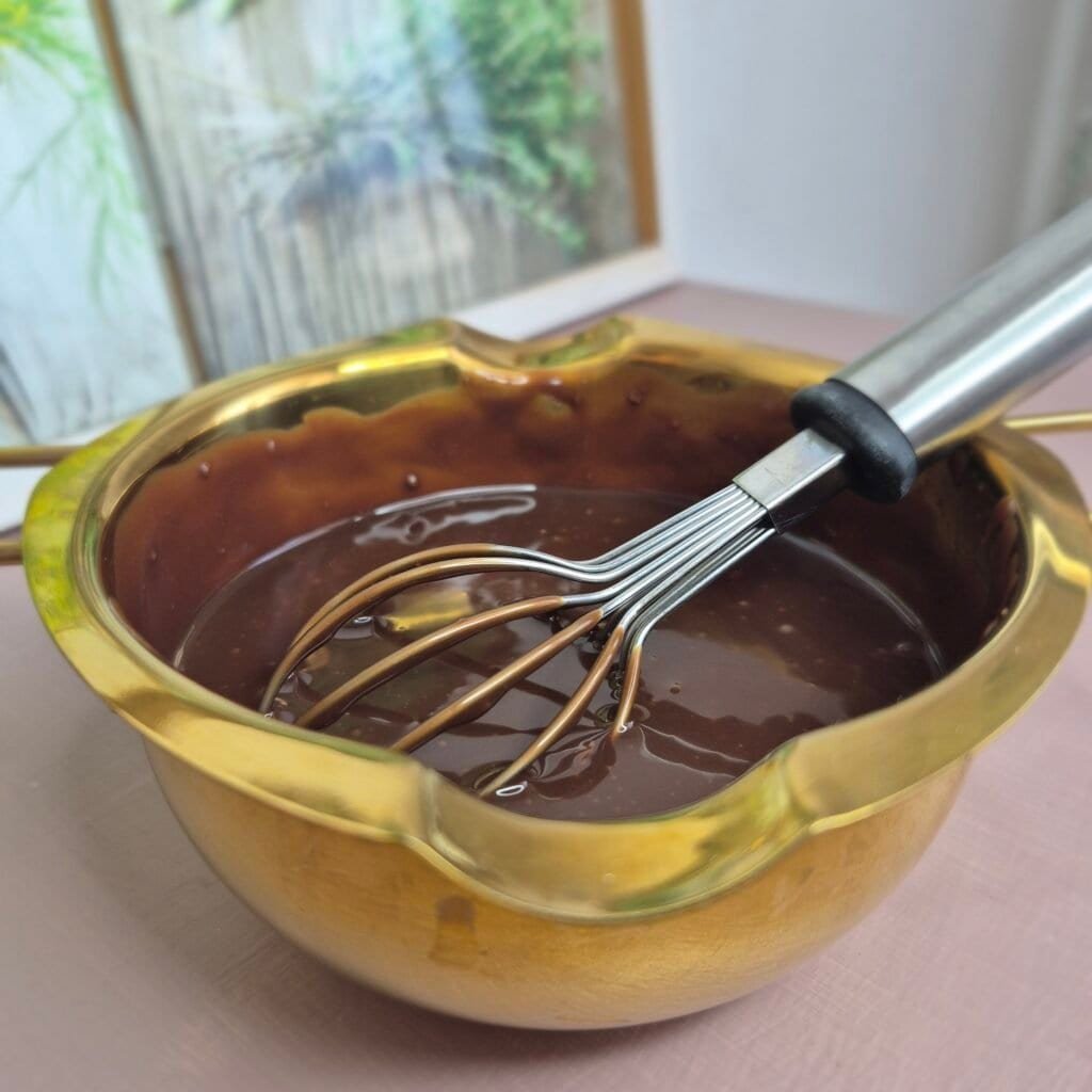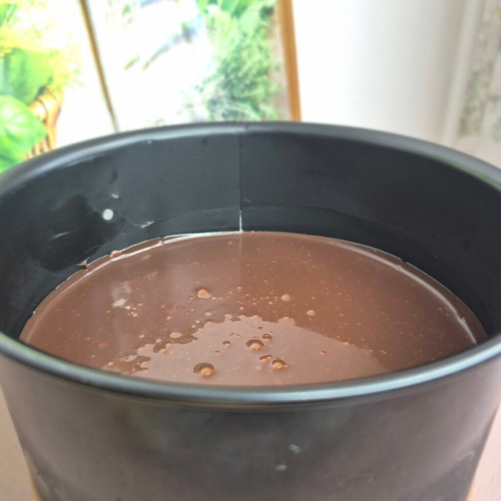 That short step creates a smooth layer that sets better than a chocolate spread would. It also gives the cake a more even texture, because once chilled, it stays where it should and does not run into the cream.