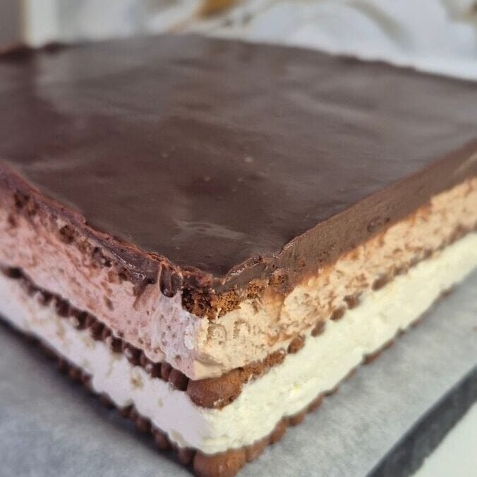 A lot of chilled biscuit cakes taste good but turn messy the second you cut them. This one holds up much better after a proper chill, so the layers stay clear and the texture is right.