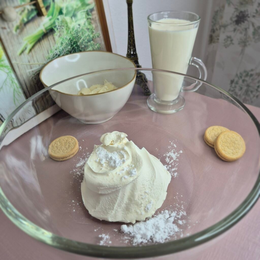 • Add the cold heavy cream and whip until the filling becomes firm and smooth.