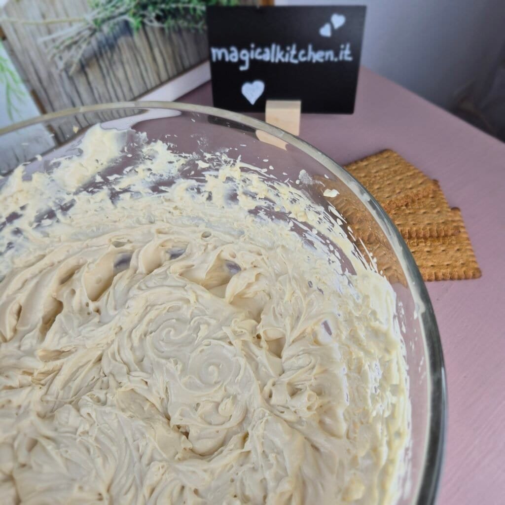 The dipped biscuits give the cake structure. They are not meant to stay crunchy, but they should not turn to mush either. A quick dip in milk is enough for them to soften later in the fridge and hold the layers together.