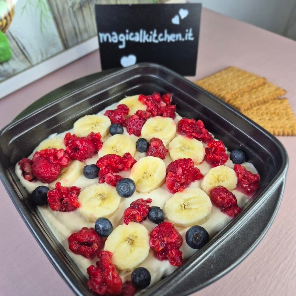 Blueberries add another layer of fruit without overpowering the dessert. They work well with the banana and raspberries and keep the fruit layer from feeling too sharp.