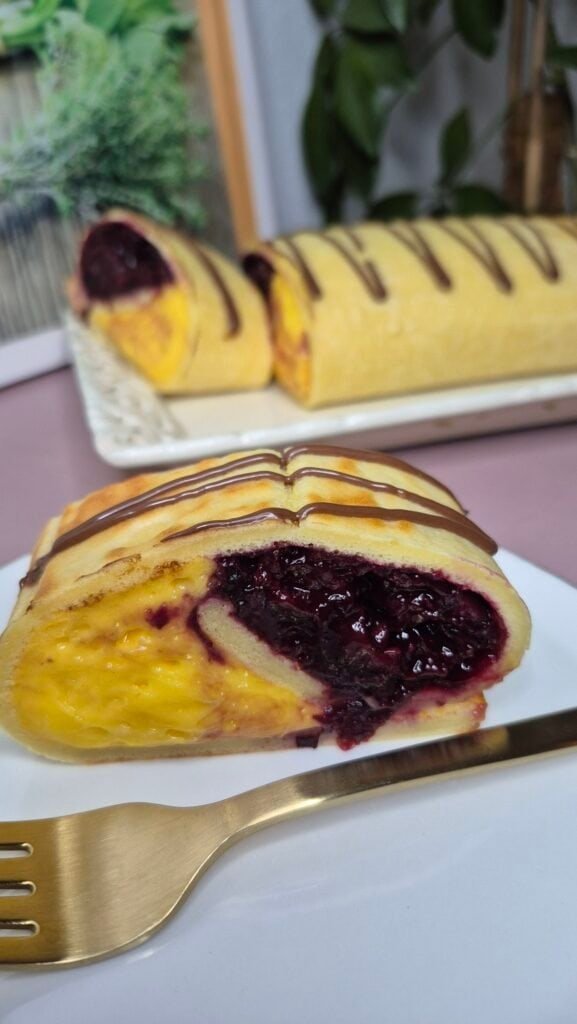 Cake Roll With Sour Cherries + Vanilla Pudding