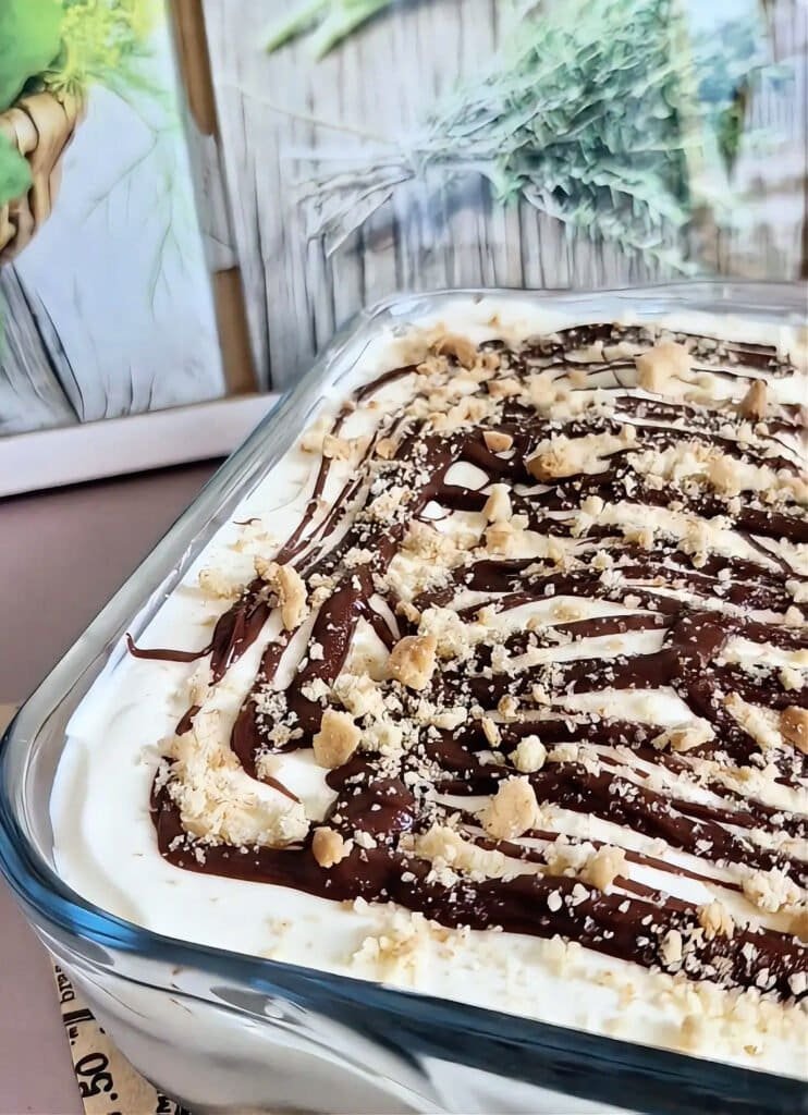 Easy No-Bake Snickers Cake with Biscuits